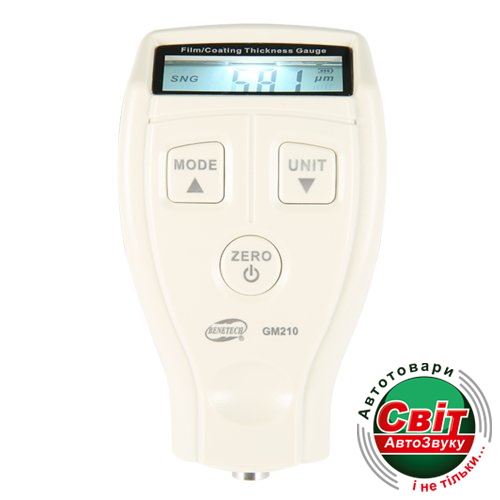 Товщиномір лакофарбових покриттів Benetech GM210GM210 толщиномер лакокрасочного покрытия производства компании Benetech. Предназначением данного толщиномера является определение толщины слоя лакокрасочного, или другого покрытия на поверхности магнитных металлов (Fe) в диапазоне от 0 мкм до 1800 мкм. (1,8 мм) Для сохранения высокой точности измерения толщины лакокрасочного либо другого типа покрытия, после замены элементов питания или очень длительного хранения прибора в данном приборе предусмотрена функция калибровки.