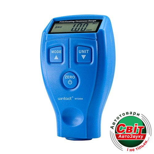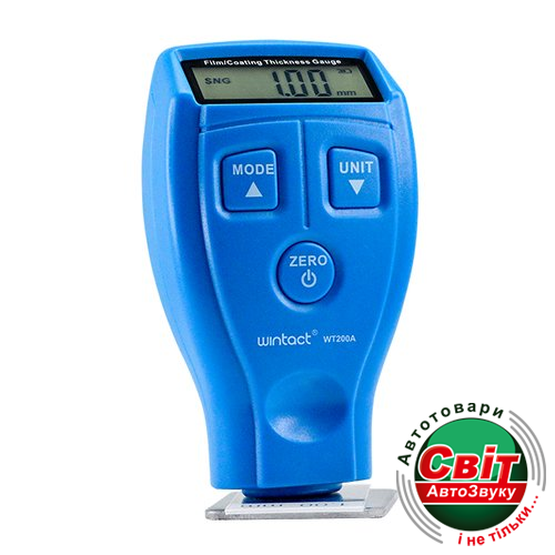 Товщиномір лакофарбових покриттів Wintact WT200AПортативний вимірювач товщини покриття (товщиномір) Wintact WT200A призначений для неруйнівного вимірювання товщини покриттів (наприклад, фарба або плівка) на магнітних та немагнітних металевих підставах.Відмінною рисою товщиноміра WT200A є висока швидкість виконання вимірювання, а також висока точність вимірювання товщини лакофарбового покриття. Прилад оснащений функцією калібрування плівками різної товщини для забезпечення ідеальної точності вимірювання після зміни досліджуваної поверхні (Fe/NFe), тривалого зберігання або заміни елементів живлення.