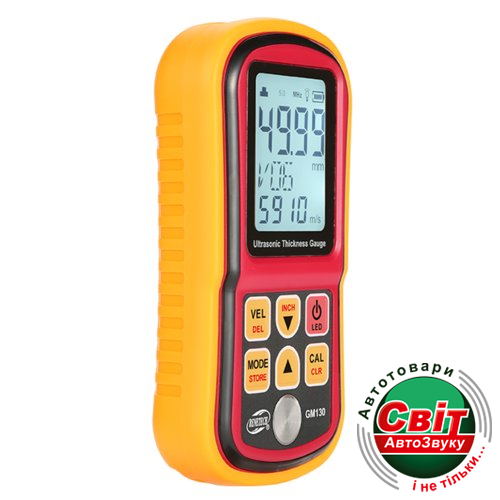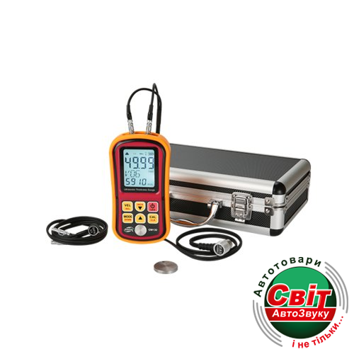 Товщиномір ультразвуковий Benetech GM130Прибор GM130 предназначен для измерения толщины объектов из материалов, являющихся хорошими проводниками ультразвука – например, металла, пластмассы, керамики, стекла и пр.; измеряемый объект должен иметь две параллельные поверхности. Ультразвуковой толщиномер не предназначен для измерения толщины объектов из чугуна, поскольку этот материал имеет плотную кристаллическую структуру.