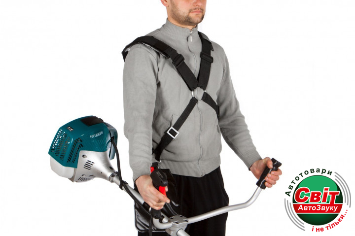 Ремінне оснащення призначене для носіння садової техніки з опорою на плече, при цьому руки звільнені від навантаження і утримання коси. Широка лямка не впивається в шкіру, м'яко лягає на тіло людини.