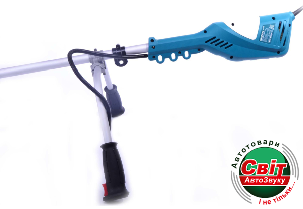 Комплектація електричної коси збільшена за рахунок додаткового сталевого ножа. За допомогою гострої насадки оператор може зрізати не тільки розрісся бур'ян і здерев'янілі бур'яни, але і невеликі кущі з тонкими гілками. Ніж володіє тривалим терміном експлуатації, завдяки заводський заточуванні. Гартована сталь здатна витримувати великі навантаження, які виникають від зіткнення з камінням.