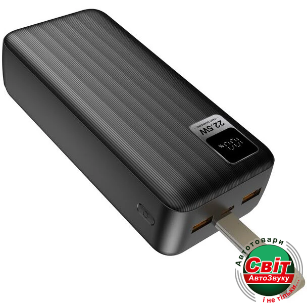 Зовнішній акумулятор P13LCDPD 30000mAh 22.5W стане чудовим рішенням для зарядки ваших пристроїв за відсутності розеток. Невелика вага, всього в 620 грамів, дає змогу брати портативну батарею із собою куди завгодно.