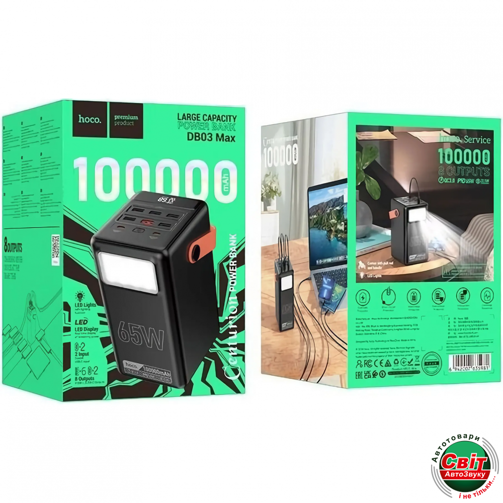 - ›УМБ Hoco DB03 Max Centurion 65W fully compatible PB/Lamp 100000mAh Black