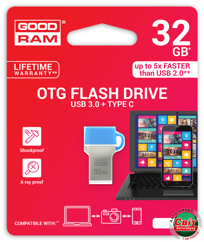 USB флеш накопичувач 32Gb GoodRam ODD3 Blue (USB3.0, Type-C)- Двойной интерфейс USB – тип A и тип C