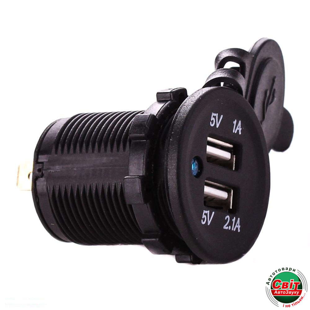 USB роз'єм RS CC013 предназначено для установки в консоль транспортного средства. В дороге очень часто возникает потребность подзарядки электронных устройств, потому данный аксессуар станет полезным как водителю, так и пассажирам. Устройство RS CC013 рассчитано на 2 USB порта. Это позволяет одновременно совершать зарядку двух гаджетов, что является преимуществом зарядного. Данный аксессуар можно использовать для зарядки мобильных телефонов, планшетов, внешних аккумуляторов и другой электроники, которая требует заряда. Каждый порт рассчитан на разный ток. Для перового USB порта он составляет 1 А, для второго - 2.1 А.Зарядное устройство черного цвета, материал - пластик. Монтажная глубина и диаметр составляют 29 и 37 мм. Входящее напряжение равняется 12 В, а напряжение USB - 5 В.