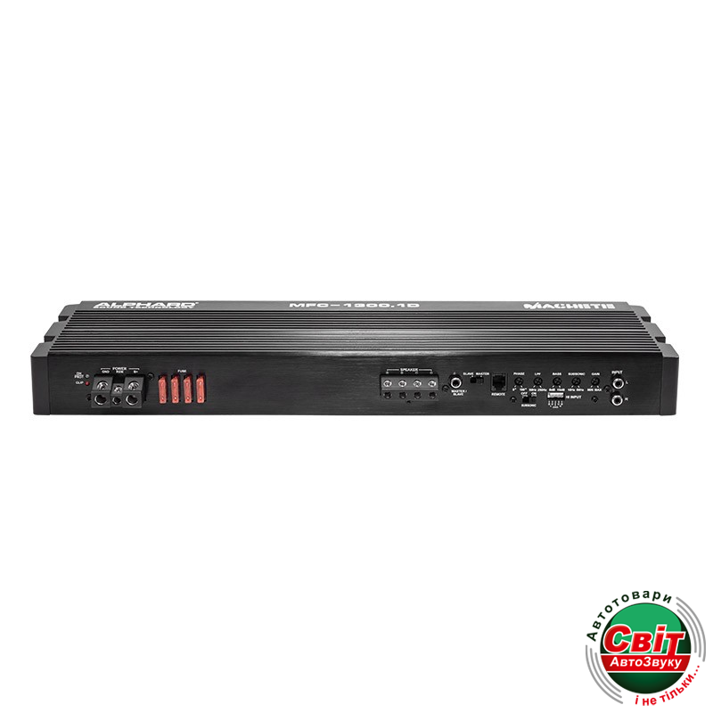 Підсилювач Alphard Machete MFC-1300.1DОтличительной особенностью данной серии является совмещённое расположение всех терминалов подключения и регулировок усилителя на лицевой стороне.