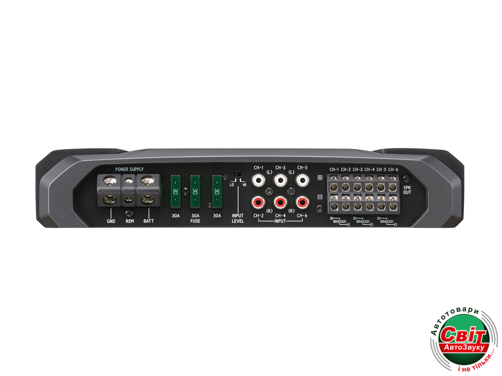 - Співвідношення сигнал/шум (при номінальній потужності на 4 Ом): gt;103dB (Ch 1-4) / gt;106dB (Ch 5+6)