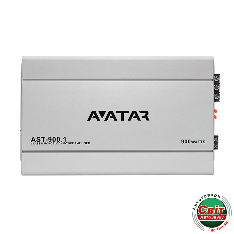Підсилювач Avatar AST-900.1Моноблок 900.1 - плавная регулировка уровня усиления баса, фильтр низких частот и регулировка фазы сигнала, рабочее напряжение 9 – 15 В. Максимальная мощность 1200 и 1800 Вт соответственно.
