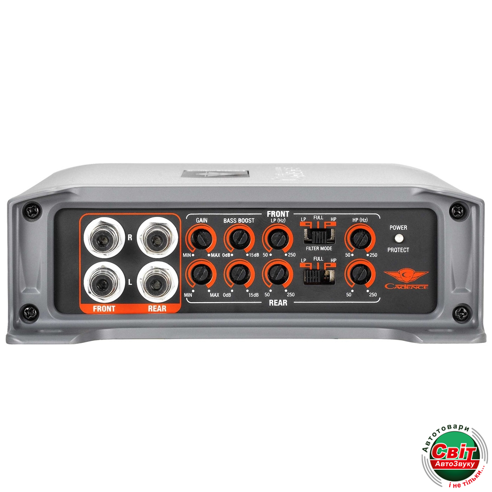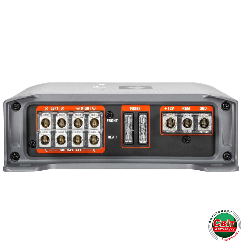 Підсилювач Cadence QR 80.4Потужний чотирьохканальний автомобільний підсилювач класу D, призначений для поліпшення якості звучання акустичних систем. Здатний видавати до 80 Вт потужності на канал при 4 Ом, до 125 Вт при 2 Ом опору і відрізняється дуже широким діапазоном відтворюваних частот від 20 до 20000 Гц, що робить його придатним для використання практично в будь-яких конфігураціях. Корпус пристрою виконаний з високоякісного алюмінію і володіє радіатором для пасивного охолодження, який запобігає перегріванню навіть при тривалій роботі на максимальній потужності. Компактні розміри 234 x 52 x 160 мм дозволяють встановити підсилювач CADENCE QR 80.4 в будь-який, навіть дуже невеликий автомобіль.