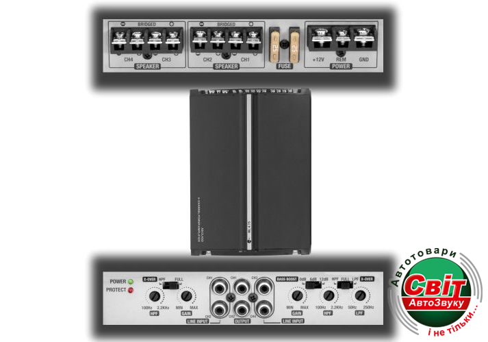 - потужність (2 Ом): RMS 100 Вт х4, мах 200 Вт х 4