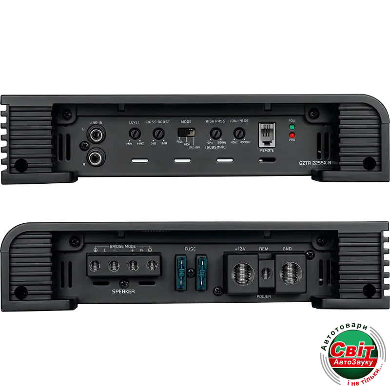 Підсилювач Ground Zero GZTA 2255X-B2-канальний підсилювач зі схемою класу A/B, вбудованим активним кросовером і ефективним анодованим радіатором