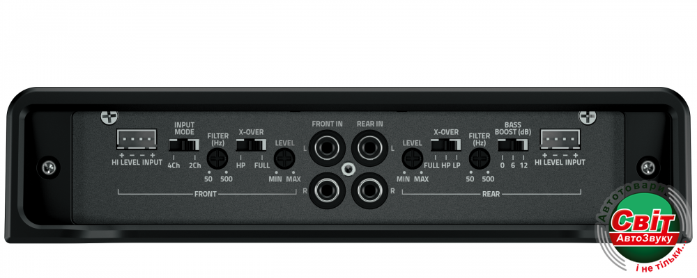 - Посилення басів каналів 3-4, дБ : 0 / +6 / +12 для 45 Гц