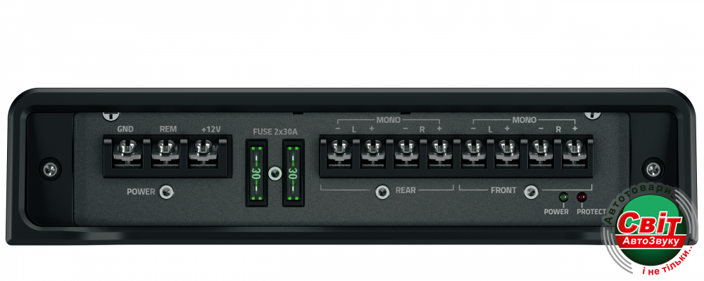 - Потужність RMS (4 канали, коефіцієнт гармонік 1%), Вт : 4 x 85 (4 Ом) або 4 x 130 (2 Ом)