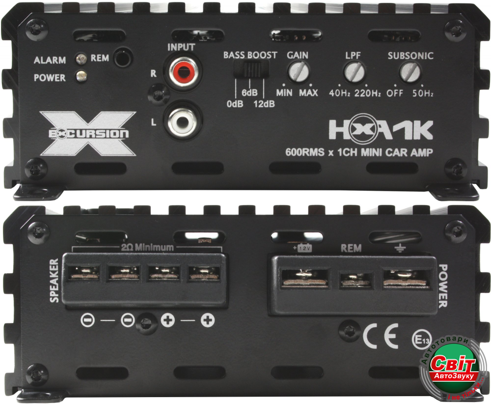 Підсилювач EXCURSION HXA 1KЦифровий МІНІ моноблок стабільний при 2Ом, Subsonic, 1х 400Вт(4Ом), 1х 600Вт(2Ом), розмір 185 x 140 x 54 мм, D - клас