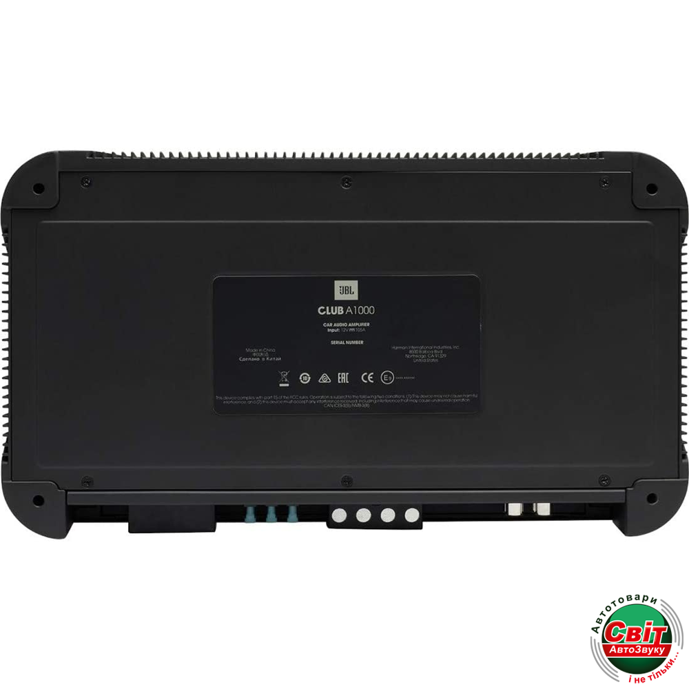 Моно-підсилювач сабвуфера JBL Club A1000 забезпечує середнеквадратичну потужність 1000 Вт з використанням конструкції підсилювача класу D для забезпечення високої вихідної потужності і мінімального споживання струму.