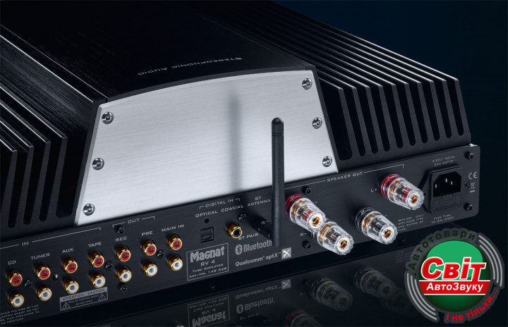 Підсилювач Magnat RV4 blackГибридный интегрированный усилитель класса high-end с ламповым предусилителем и Bluetooth aptX. Гармоничное сочетание лампового звука и транзисторной мощи. Выход предусилителя, вход усилителя мощности, предусилитель-корректор для MM и MC. Длительная выходная мощность 150 Вт на канал.