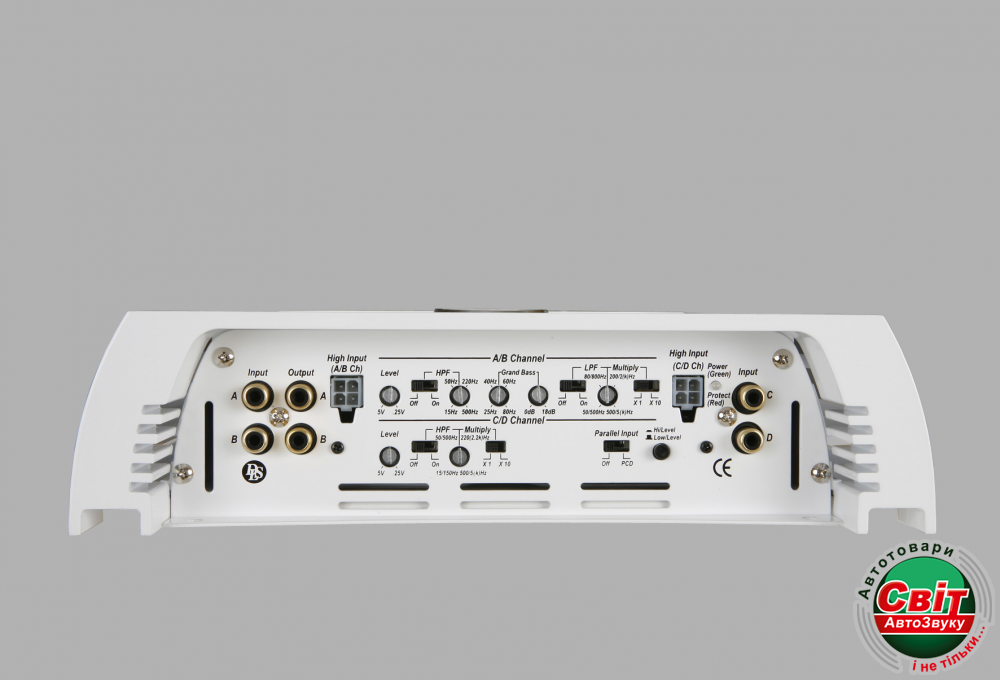 Класс усилителя: AB, Максимальная выходная мощность (4 Ом), Количество каналов: 4. Номинальная выходная мощность RMS (4 Ом): 4 х 70 Вт. Номинальная выходная мощность RMS (2 Ом): 4 х 125 Вт. Минимальное сопротивление нагрузки: 4 Ом. Возможность мостового включения нагрузки: да . Номинальная мощность при мостовом подключении (4 Ом): 2 х 200 Вт
