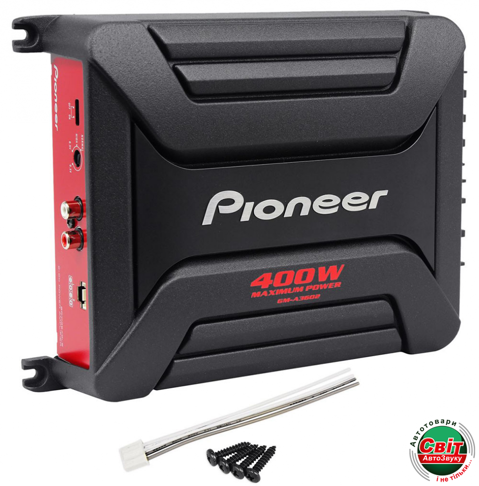 Підсилювач Pioneer GM-A3602Компания Pioneer представляет модель аналогового автомобильного усилителя, разработанный с акцентом на высокую мощность и инсталляционную гибкость. Без проблем подключаются к OEM- или «не заводским» аудиосистемам благодаря функции распознавания входного сигнала, включающей усилитель при появлении аудиосигнала на входных разъемах. Шасси уменьшенного размера позволяет размещать усилители в ограниченном пространстве без риска для качества звучания. Несмотря на компактный размер, устройство является мощным и высококлассным, а присущие звучанию реалистичность и широкий динамический диапазон выгодно отличают данную модель от конкурентов.
