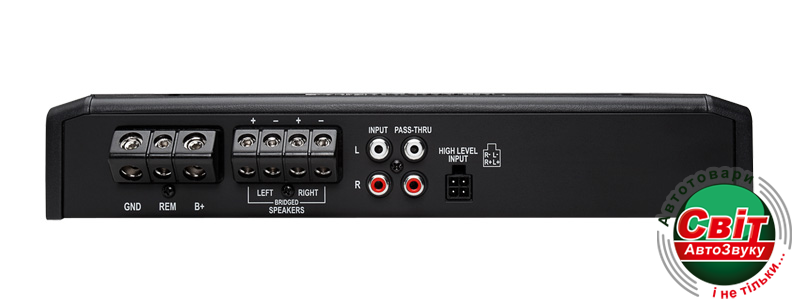 Двухканальный автомобильный стереоусилитель класса АВ, 2x50 Вт @ 4 Ом (RMS), 2x75 Вт @ 2 Ом (RMS), 1x150 Вт @ 4 Ом (RMS), 20 Гц - 20 кГц +/-1дБ, ФВЧ/ФНЧ фронт и тыл (50-250 Гц @ 12dB на октаву), раздельный GAIN на фронт и тыл, настраиваемый усилитель басов Punch Bass (от 0dB до +12dB @ 45 Гц), входы высокого уровня, 2 уровня защиты, 4 AWG входы для кабеля питания, 8 AWG входы для акустического кабеля, размеры: 5 x 17.2 x 28.5 см, цвет - черный.