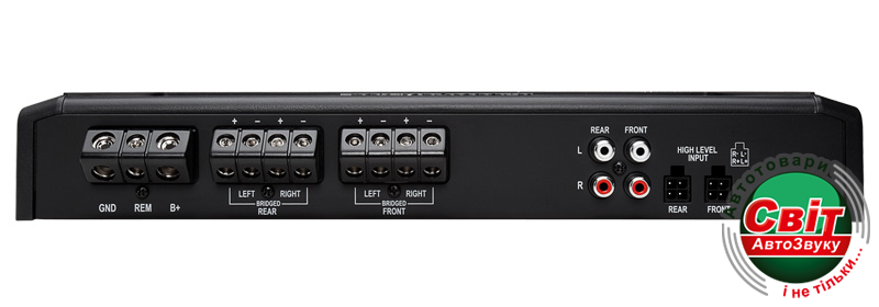 4-канальный автомобильный стереоусилитель класса АВ, 4x50 Вт @ 4 Ом (RMS), 4x75 Вт @ 2 Ом (RMS), 2x150 Вт @ 4 Ом (RMS), 20 Гц - 20 кГц +/-1дБ, ФВЧ/ФНЧ фронт и тыл (50-250 Гц @ 12dB на октаву), раздельный GAIN на фронт и тыл, настраиваемый усилитель басов Punch Bass (от 0dB до +12dB @ 45 Гц), входы высокого уровня, 2 уровня защиты, 4 AWG входы для кабеля питания, 8 AWG входы для акустического кабеля, размеры: 5 x 17.2 x 33.5 см, цвет - черный