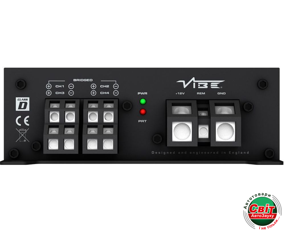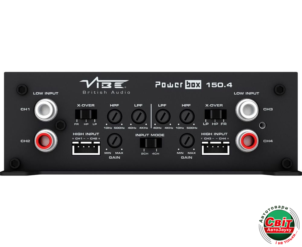 Підсилювач Vibe POWERBOX150.4М-V0Підсилювач Vibe POWERBOX150.4М-V0Vibe POWERBOX 150.4M-V0 - це сучасний автомобільний чотирьохканальний підсилювач класу D від всесвітньо відомого виробника автозвуку преміум класу Vibe British Audio. Клас D вирізняється вищим рівнем ефективності, ніж класичні підсилювачі класу АВ, при цьому має компактні розміри, дає змогу об'єднувати канали для під'єднання високопотужних динаміків або сабвуфера. Підсилювач має кілька варіантів підключення вхідного сигналу, як за допомогою RCA роз'єму, так і за допомогою високорівневих входів.
