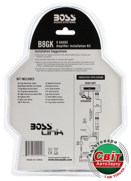 Набір для підключення підсилювача Boss Audio B8GKБольше не нужно покупать каждый провод в отдельности и беспокоиться о том, что чего-то может не хватить, этот комплект имеет всё что нужно для создания непревзойдённого звучания в салоне автомобиля. Вместе с установочным комплектом Boss B8GK салон вашего авто наполнится идеальным звуком, что несомненно понравится вам и вашим спутникам.