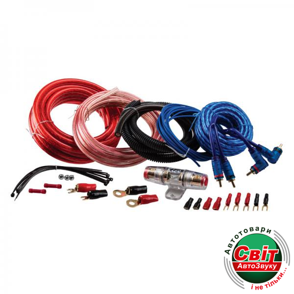 Установочный комплект для 2-х канального усилителя, силовой медный провод 4GA, предохранитель типа AGU.