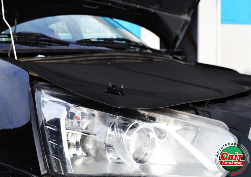 Примечание: легкий монтаж, остаётся только сформировать материал по размеру подкапотного пространства.