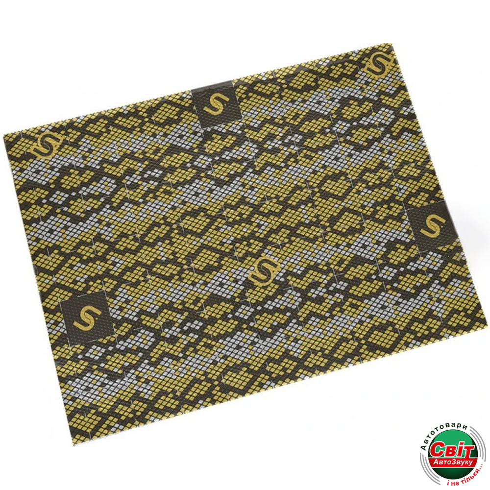 Віброізоляція Safari Python 1.8 (370х500мм)Вібропоглинаючий матеріал Safari Python 1.8 – оптимальний варіант для автомобілістів, які чекають на гідний результат. Унікальна рецептура полімеру, якісна двошаровість та дикий принт закладають баланс у роботу з найбільш вібронавантаженими частинами автомобіля.