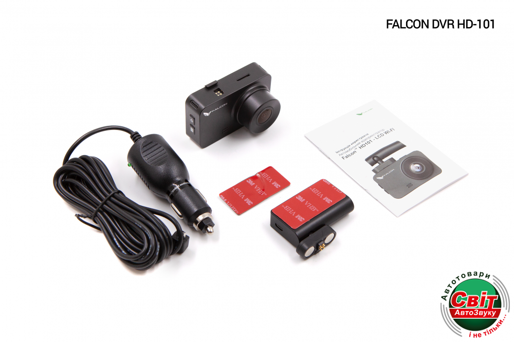 - Пристрій Falcon HD101 - LCD WiFi- Зарядний пристрій 12V- Кріплення на 3М скотчі- Інструкція