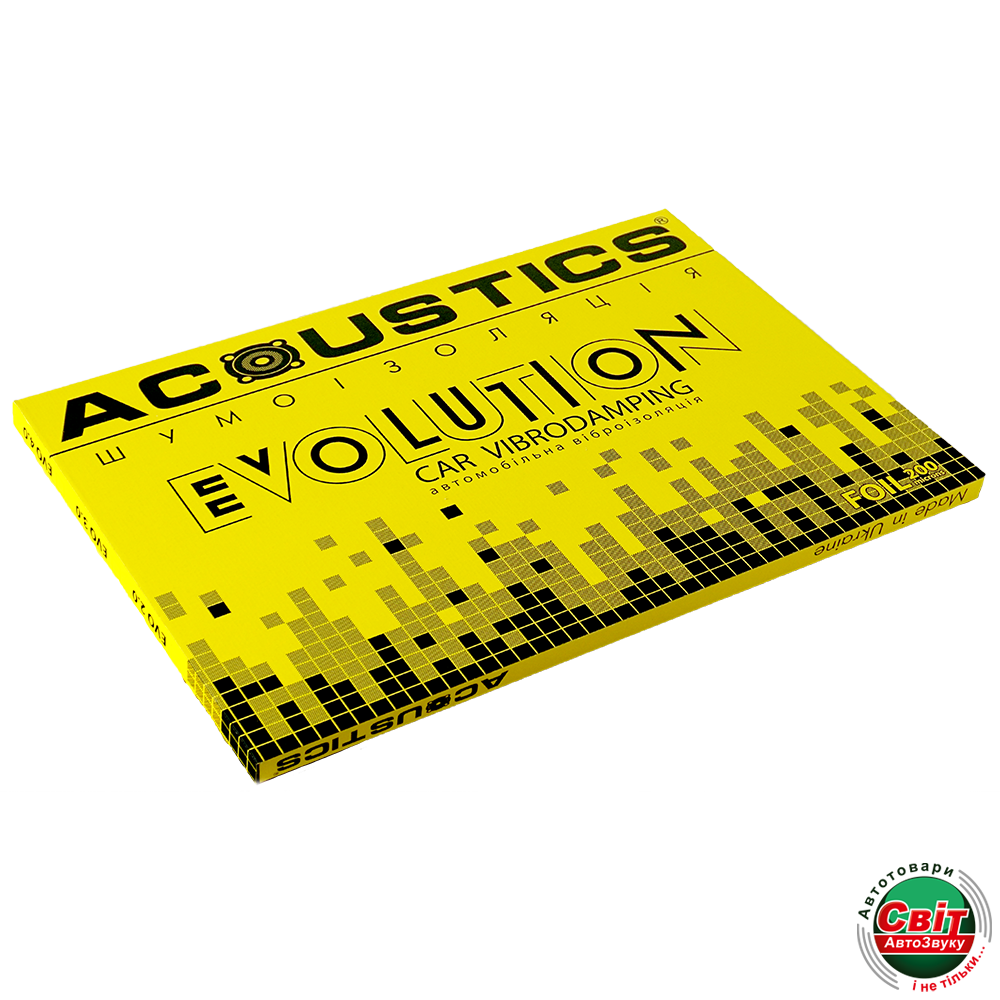 Віброізоляція Acoustics Evolution EVO 2.0 (0,7x0,5)ACOUSTICS EVOLUTION - вібродемпфуючий матеріал, що створює максимальний рівень комфорту у вашому автомобілі. Поглинає дорожні шуми і збільшує динамічний діапазон акустичної системи, завдяки цим властивостям ви значно знизите рівень шуму в салоні автомобіля і зможете насолоджуватися якісною музикою. Вібродемпфуючий матеріал складається з полімерного бутилового шару, розробленого на основі високомолекулярного поліізобутилену, декількох видів каучуку, спеціальних добавок і наповнювачів. Це поєднання підсилює молекулярну структуру полімеру, що призводить до підвищення його ефективності. При цьому склад має дуже високу липкість. Для підвищення ефективності під час виробництва Acoustics EVOLUTION використовується алюмінієва фольга товщиною 200 мкм. Незважаючи на це матеріал досить легкий за рахунок високого відсотка вмісту каучуків. Для можливості застосування в різних частинах кузова випускається в товщинах 2,0; 3,0; 4,0 мм.