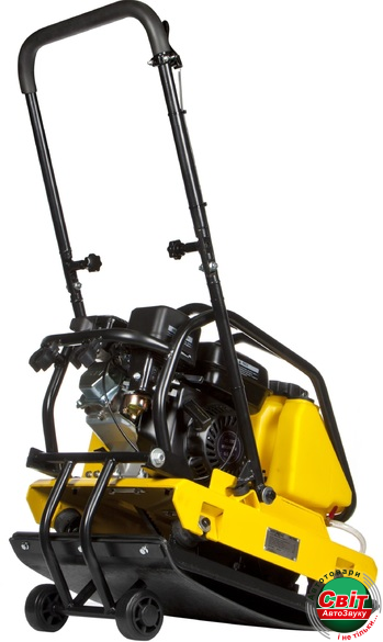 Модель комплектується еластичною подушкою з поліуретану для обробки декоративного покриття і тротуарної плитки без пошкодження. Така накладка кріпиться до обладнання без допоміжних пристосувань. Транспортувальні коліщатка полегшують доставку агрегату до місця проведення спресовувальних заходів і переміщення між об'єктами.