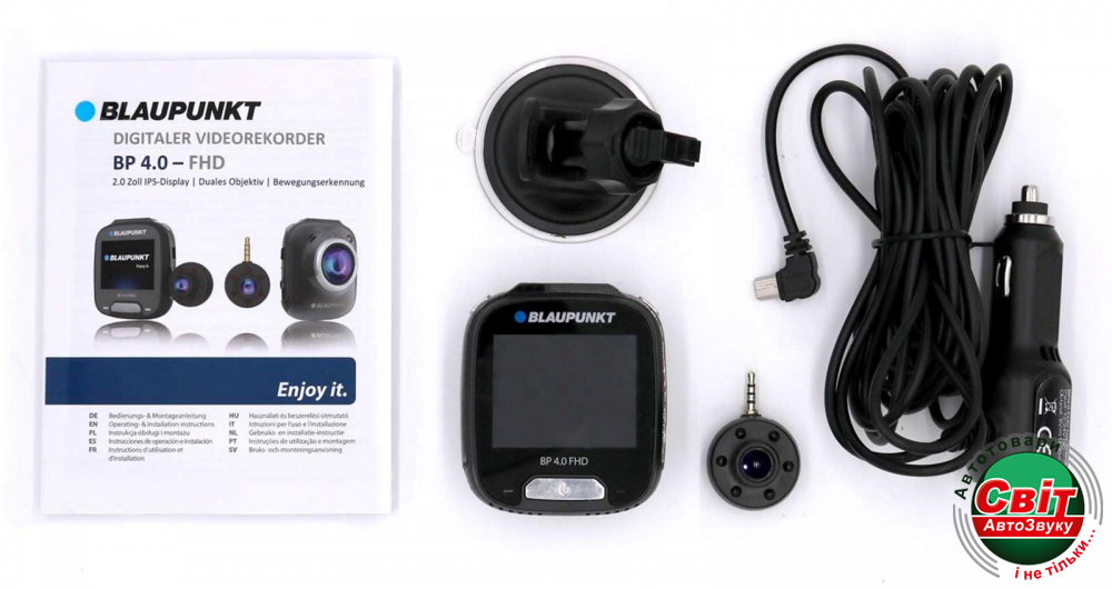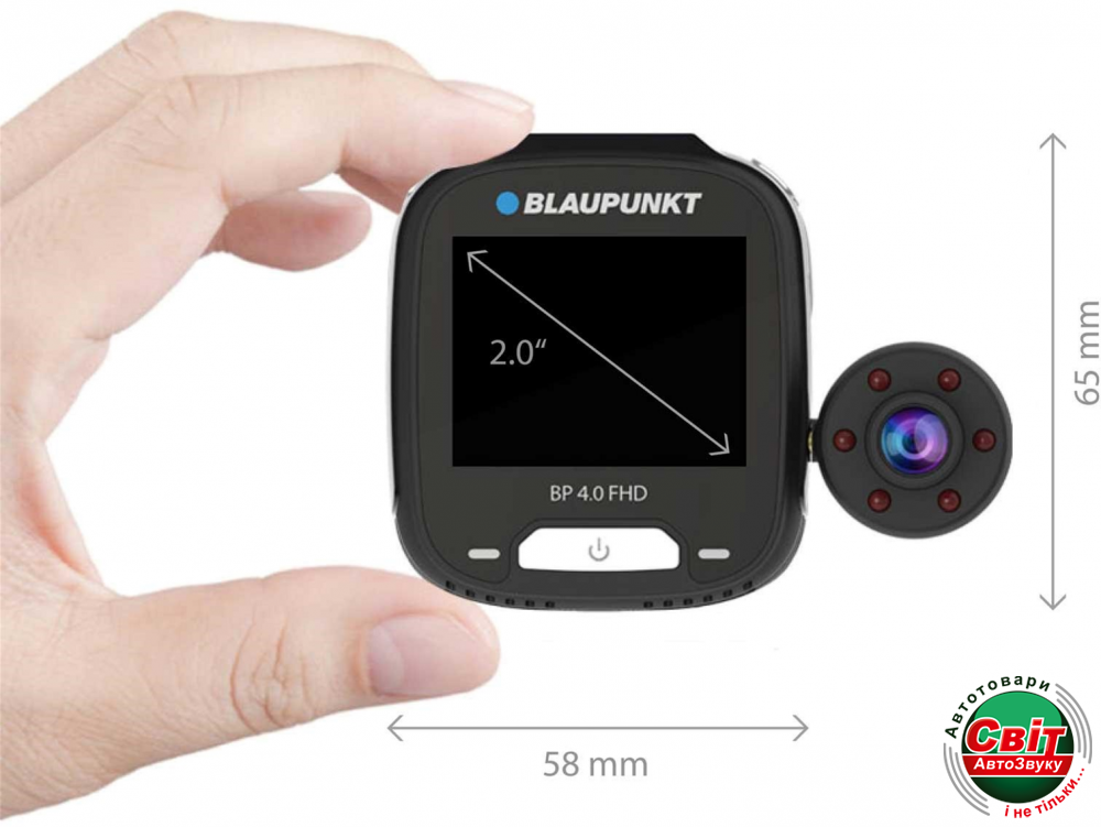 Відеореєстратор Blaupunkt BP 4.0Сучасний багатофункціональний відеореєстратор з додатковою камерою, вбудованим монітором та сучасним зовнішнім виглядом. Реєстратор Blaupunkt BP 4.0 FHD зроблений у формі дуже компактного циліндра, завдяки чому його можна розмістити у верхній частині лобового скла, і він не буде заважати огляду в процесі керування автомобілем.