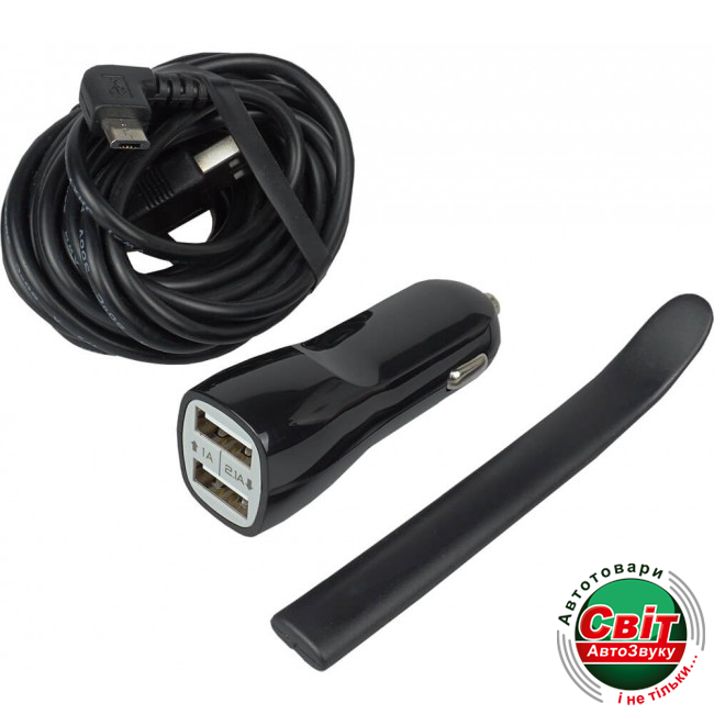 - Живлення: 5В, БЖ 12/24В від автомобільної розетки з додатковим роз'ємом USB 1A.