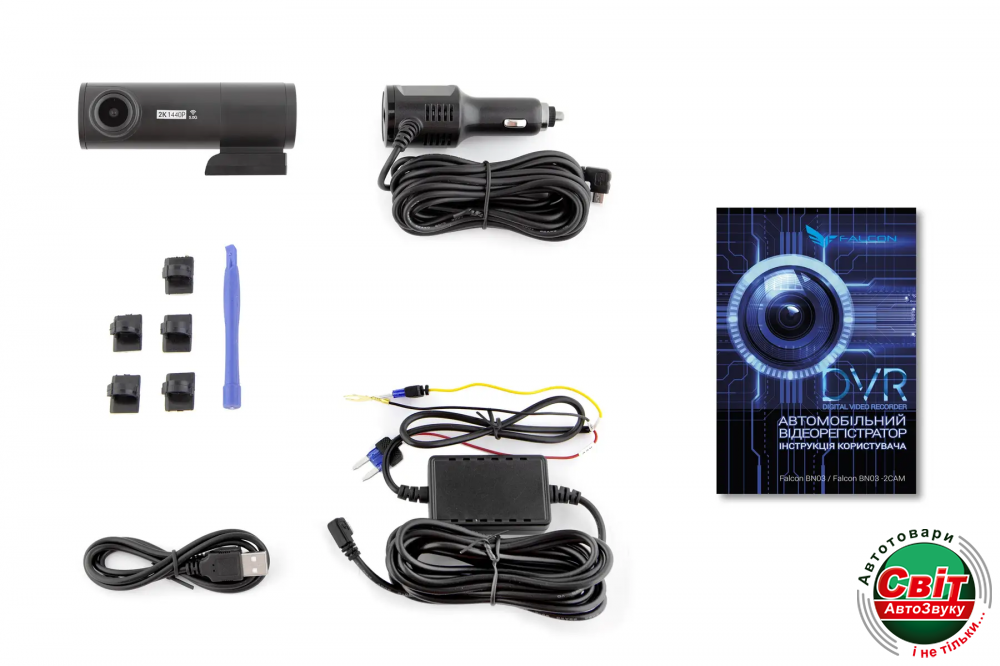 Відеореєстратор Falcon BN03-2CAMМобільний відеореєстратор 2K якості для використання в автомобілі.