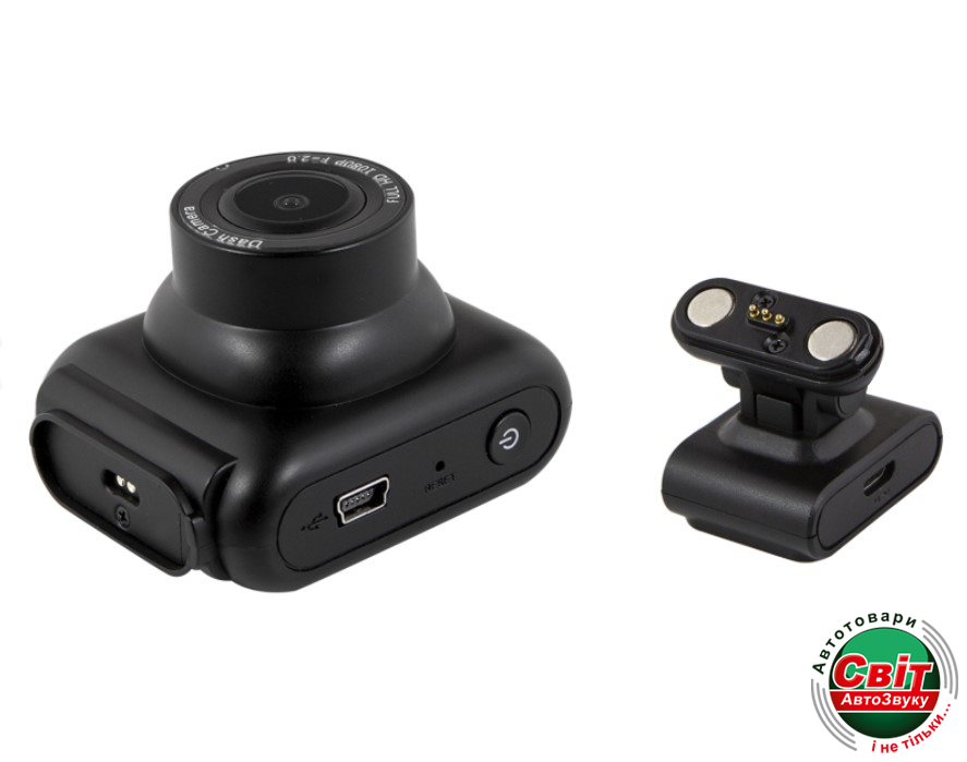 - Вхідне в комплект магнітне кріплення на 3М скотчі дозволяє встановити відеореєстратор в малопримітного місці як стаціонарно, так і з можливістю демонтажу