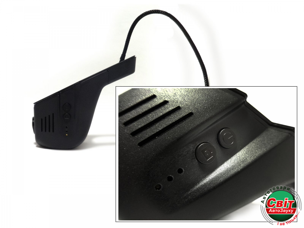 Відеореєстратор Falcon WS-01-UNIШтатный Wi-Fi Full HD видеорегистратор Falcon WS-01-UNI для автомобилей. Дисплей отсутствует. Управление и просмотр видео c помощью телефона на Android или iOS. Наличие AV-выхода для подключения к внешнему экрану. Процессор Novatek 96655. Встроенный микрофон. Широкоугольная камера 5Mp. Разрешение записи видео до 1920x1080 (30 кадров в сек). Запись на карту памяти MicroSD/SDHC до 32Gb. Доступны модификации для установки на автомобили различных марок (Audi, BMW, Landrover, Jaguar, Acura, Volvo, BMW, Porsche, Toyota, Chevrolet, Ford, Jeep, Infiniti, Lexus, Mazda, Honda, Subaru, VW, Mitsubishi, Mercedes-Benz, Hyundai, Kia, Nissan).