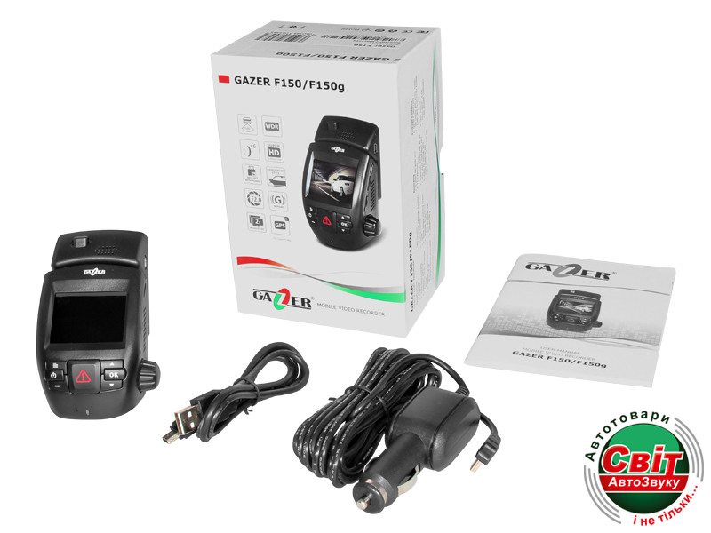 Super HD регистратор для автомобиля Gazer F150 комплектуется всем необходимым для подключения и дальнейшей эксплуатации.