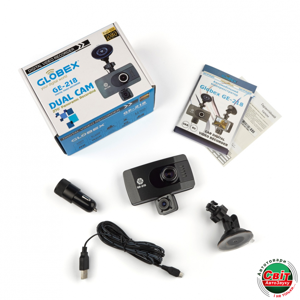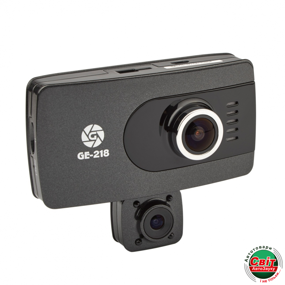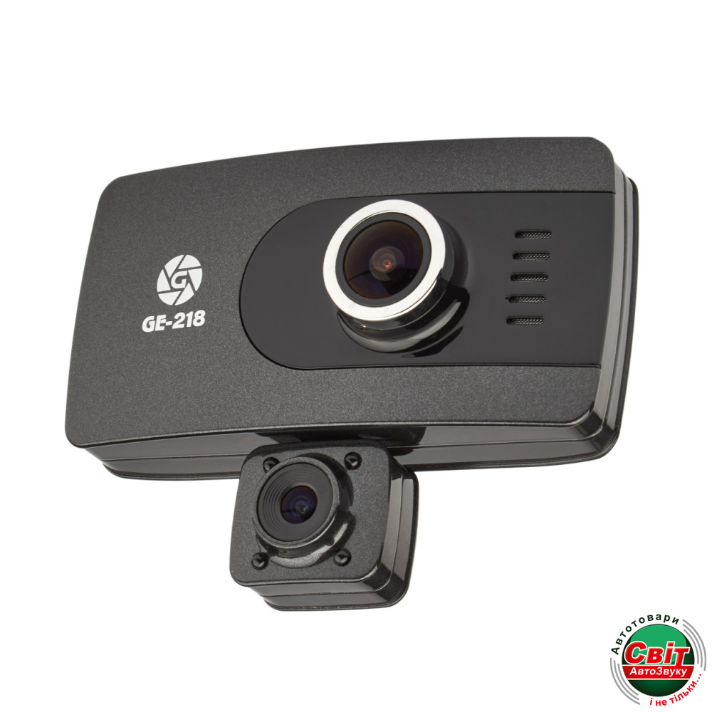 Відеореєстратор Globex GE-218 оснащен двумя видеокамерами: