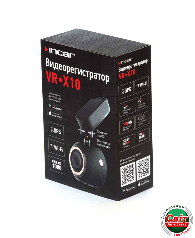 Відеореєстратор Incar VR-X10Відеореєстратора Incar VR-X10 обладает широким набором новейших функций и характеристик. Особенностью данной модели является возможность управления или просмотра записей с помощью смартфона или компьютера через Wi-fi, а также GPS модуль для сохранения скорости и маршрута движения. Компактные размеры, удобство и быстрота снятия/установки с помощью магнитного крепления приятно Вас удивят. Сверхчувствительный видеосенсор SONY IMX323 в комбинации с 6-ти слойной оптикой обьектива выдаст отличное качество видеокартинки. Для просмотра записанных видеофайлов необходимо установить на смартфон или ПК необходымые приложения.