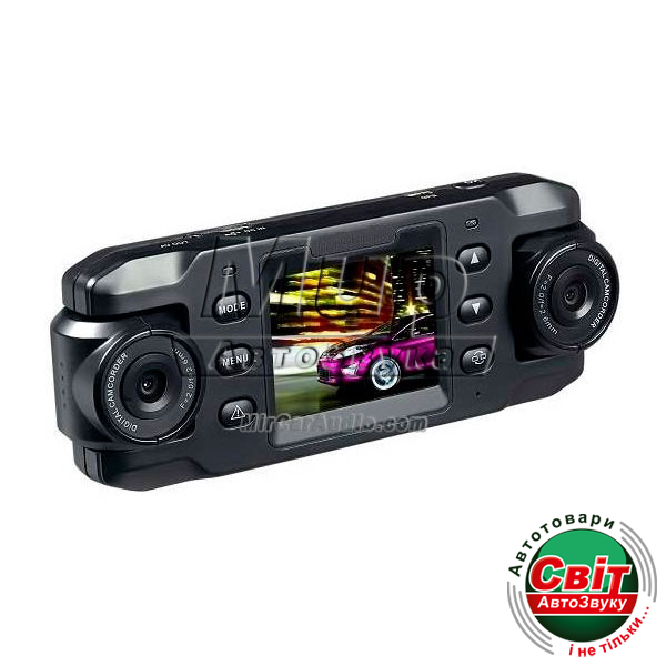 • Автомобильный видеорегистратор с двумя поворотными камерами