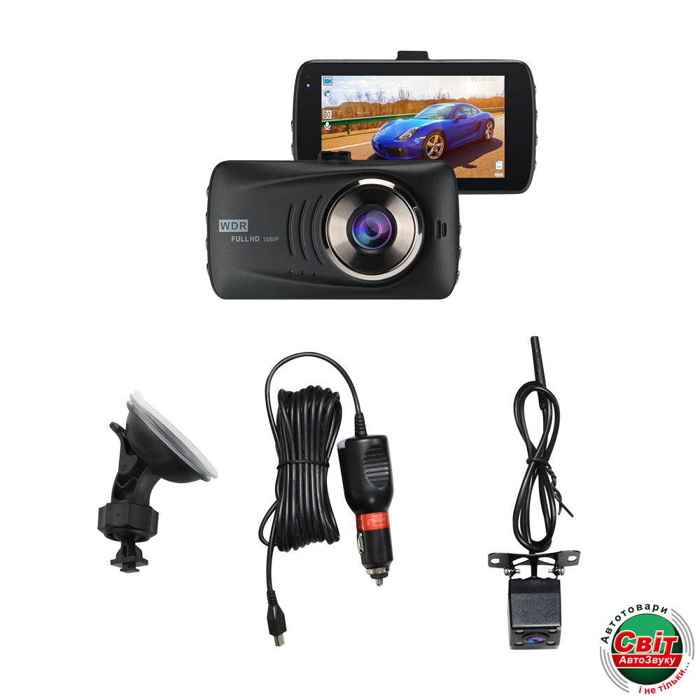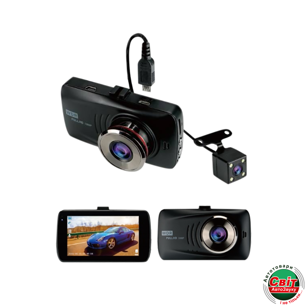 Автомобильный видеорегистратор с двумя камерами, предназначеный для видеонаблюдения в режиме реального времени.Регистратор может записывать изображение одновременно с двух камер, - передней и задней, что позволяет вести надежный видеомониторинг окружающей обстановки.