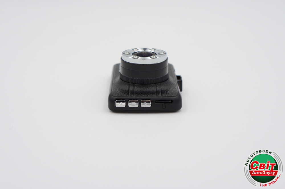 Корпус выполнен из качественного пластика со вставками под кожу. Практически всю заднюю грань занимает экран, на котором сразу же, на месте, можно просмотреть отснятое видео, если выйти из режима записи и перейти в режим просмотра. Слева в углу расположены LED-индикаторы питания и съемки, чтобы даже при отключенном экране (а такая опция есть в меню), можно было увидеть что прибор заряжается и записывает, ну или увидеть обратное. Возле объектива на передней грани расположены 6 светодиодов ночной подсветки. При съемке на рассвете или в сумерках, когда свет поступает с одной определенной стороны, качественную видеосъемку обеспечит режим WDR который выравнивает освещение и исключает любые засветы на видеозаписи. В устройстве используется сенсор AR0330, который уверенно занимает лидирующие позиции на рынке.