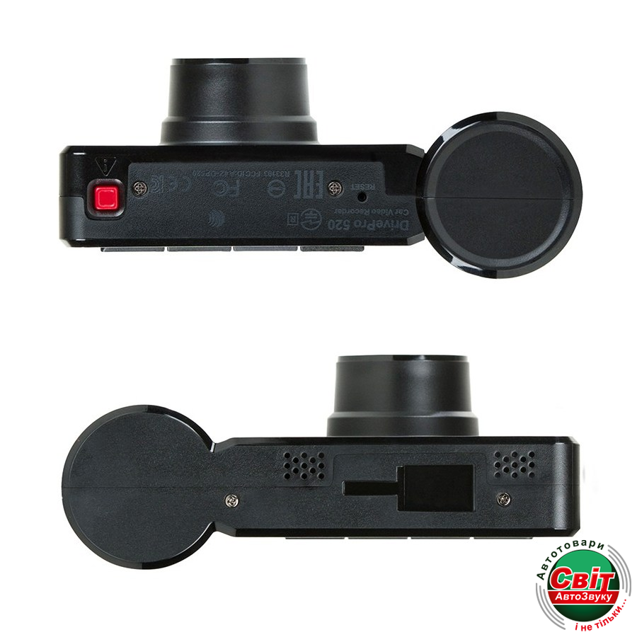 DrivePro 520 оснащен двумя объективами, чтобы снимать все, что происходит как снаружи, так и внутри автомобиля, что позволяет повысить уровень безопасности в дороге. Благодаря инновационному объективу с диафрагмой ƒ/1.8, конструкция которого включает 6 линз, камера способна вести съемку при различном уровне освещенности, и днем, и ночью записывая четкое видео в формате Full HD 1080P. Камера на тыльной стороне видеорегистратора имеет объектив, который можно поворачивать на угол до 180°, что позволяет в деталях запечатлеть все происходящее в салоне автомобиля в течение вашего путешествия .