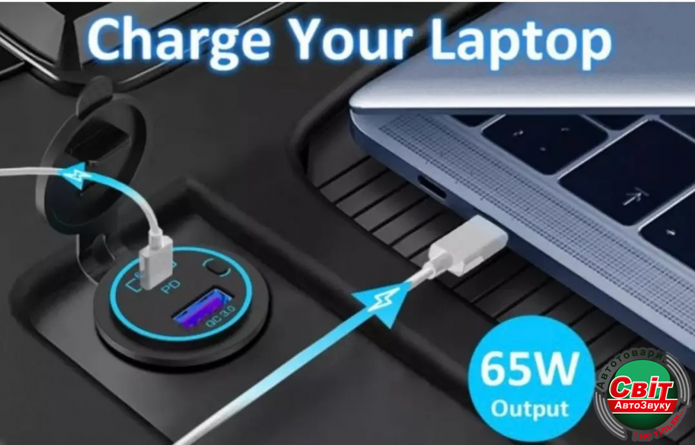 - ›Адаптер врізний USB зарядка QC 3.0+PD Type-C 65W з кнопкою в прикурювач