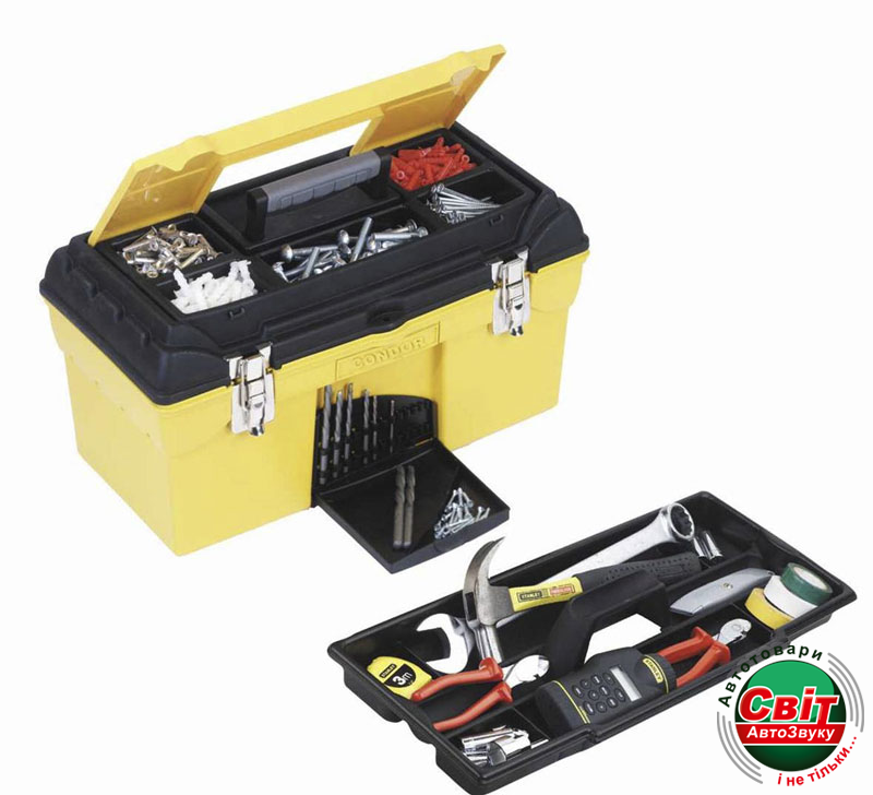 - Ящик для инструмента "Condor" пластмассовый с органайзерами и металлическими замками.