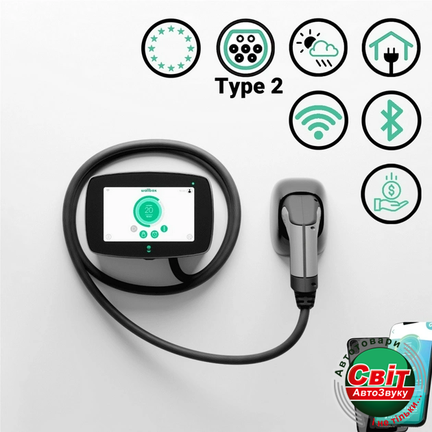 - Керування зарядкою: сенсорний екран на зарядному пристрої (доступ за допомогою PIN-коду), з телефону, з комп'ютера