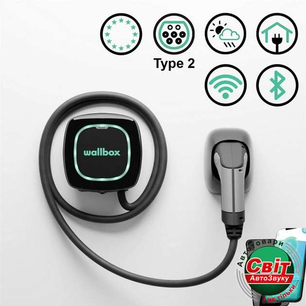 - Коммунікації: Wi-Fi, Bluetooth (myWallbox Portal, Wallbox App)