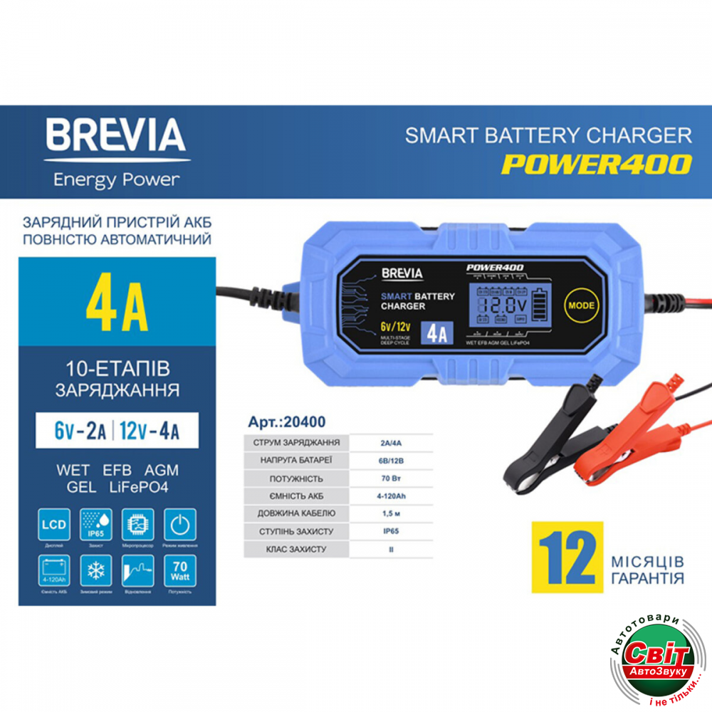- › Зарядний пристрій АКБ Brevia Power400 6V/12V, 4A 20400EP