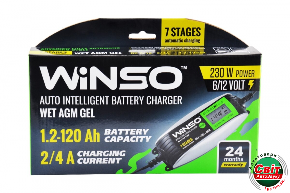 Однофазний пусково-зарядний пристрій Winso 139700 для свинцево-кислотних АКБ на основі високочастотного перетворювача з мікропроцесорним управлінням.